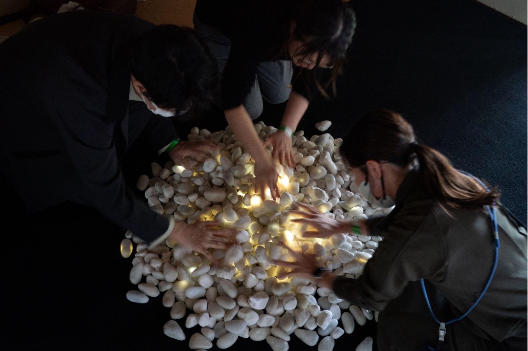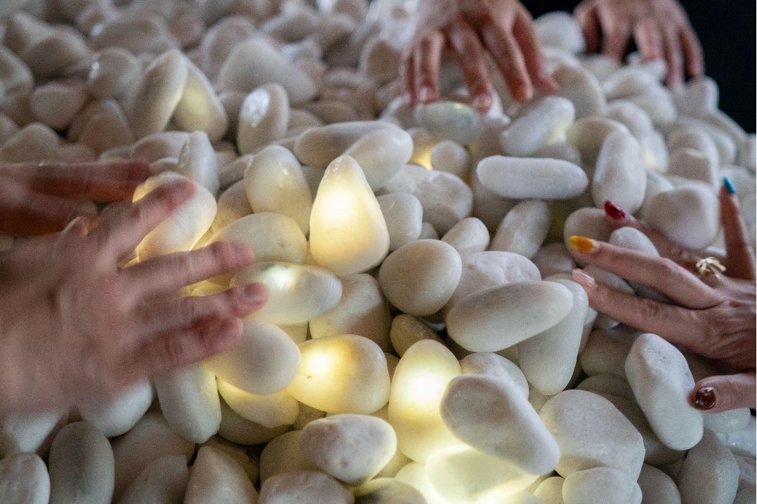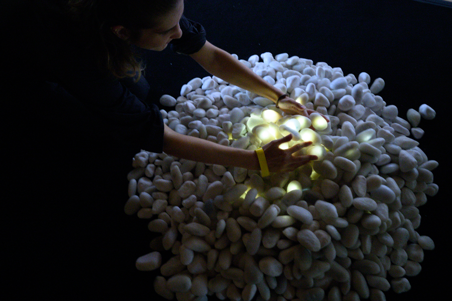 しきつめられた石の上を歩くたびに足元で一つひとつの石が瞬きのような光を放ちます。