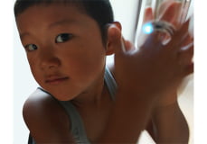 "Clap Light" is attached to the palm of the hand, this device developed by the artist himself transforms the pressure generated by clapping one's hands into electricity, which is then used to light up LEDs.