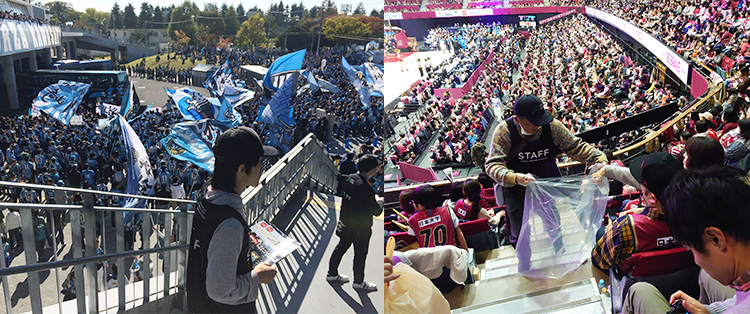 これまで川崎市内では、Jリーグ 川崎フロンターレ様やBリーグ 河崎ブレイブサンダース様などのスポーツを中心に、音楽・映画などのエンターテイメント 、地域イベントとのコラボレーションによる就労体験を行い、一般就労をめざす障がいのある方々を中心にスポーツや文化イベントなどでのお仕事を体験して頂いています。